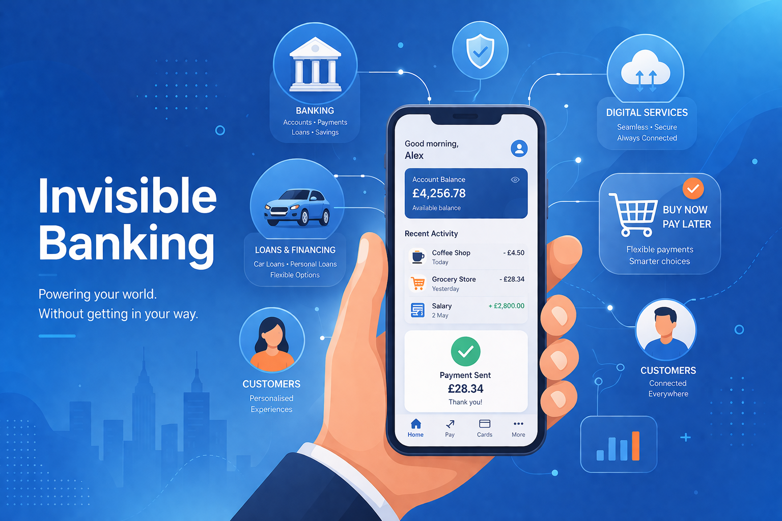 Welcome to invisible banking: a world where financial services no longer live inside apps or interfaces, but are embedded seamlessly into everyday experiences. In this model, banking doesn’t disappear—it dissolves into the background, operating quietly, intelligently, and automatically whenever needed.